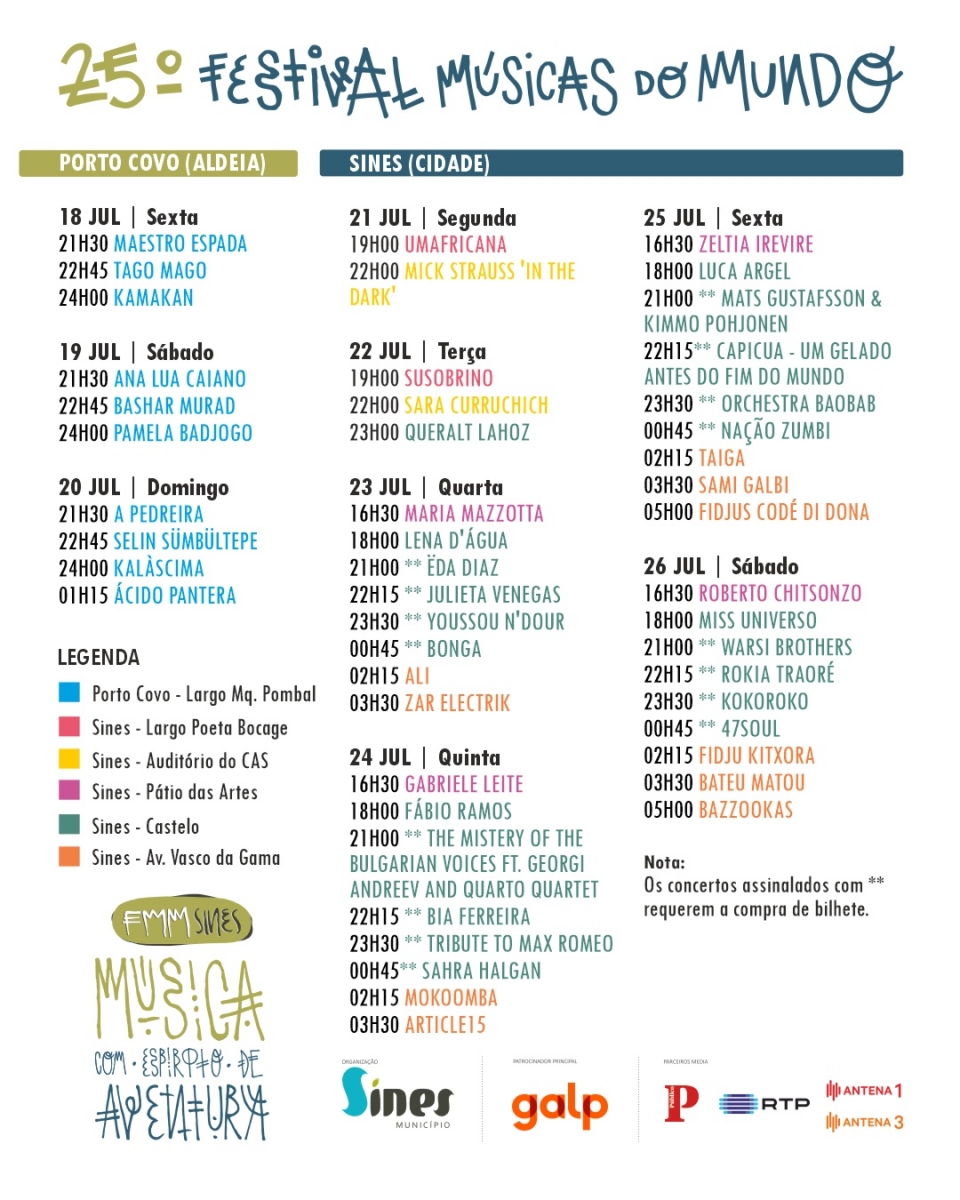 A organização do Festival Músicas do Mundo já divulgou o programa do Festival Músicas do Mundo com os horários definitivos.